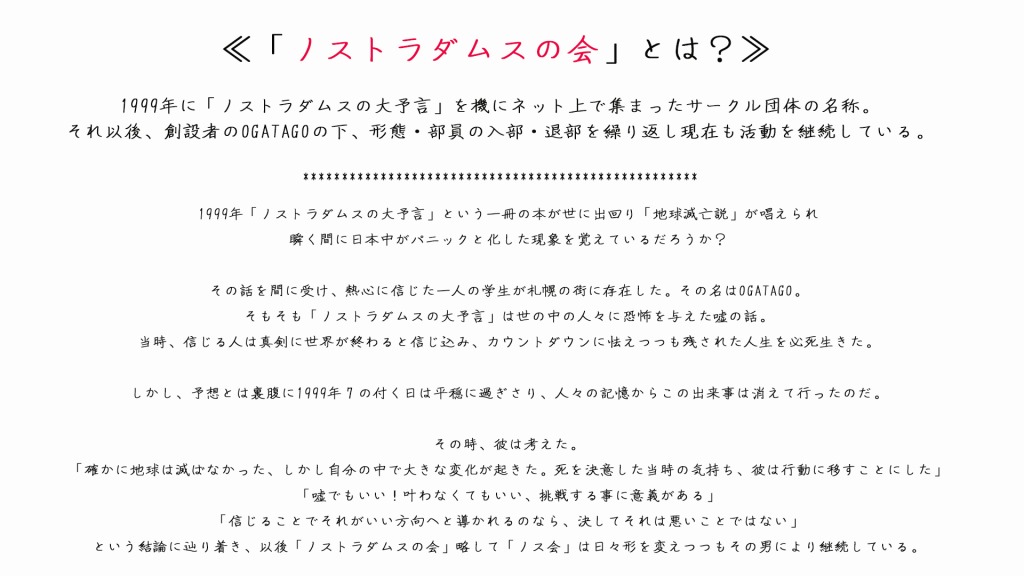今後も「ノストラダムの会」シリーズはどんどん続いていきますので、 「ノス会」をこれからもよろしくお願いします!