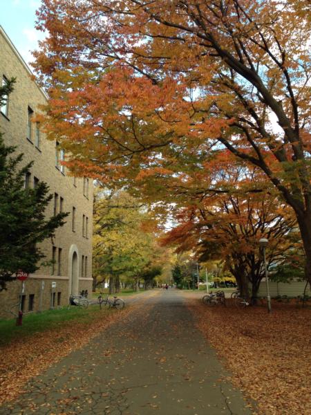 北大はイチョウがヒラヒラと落下。絵になるなー